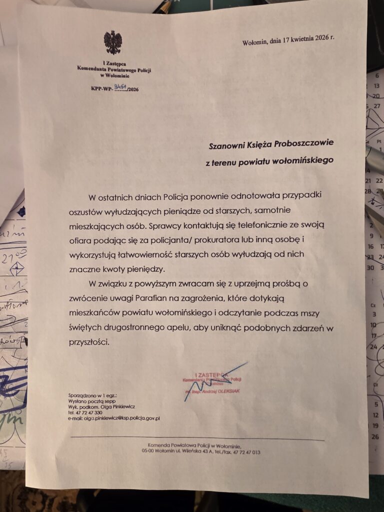 4. Zapraszamy na film „Maryja. Matka Papieża” do  kina Helios w Wołominie w poniedziałek i wtorek o 17.00 oraz we środę 29.04 o 18:30. Bilety zniżkowe za 17 zł można uzyskać podając hasło  „POWOŁANY”